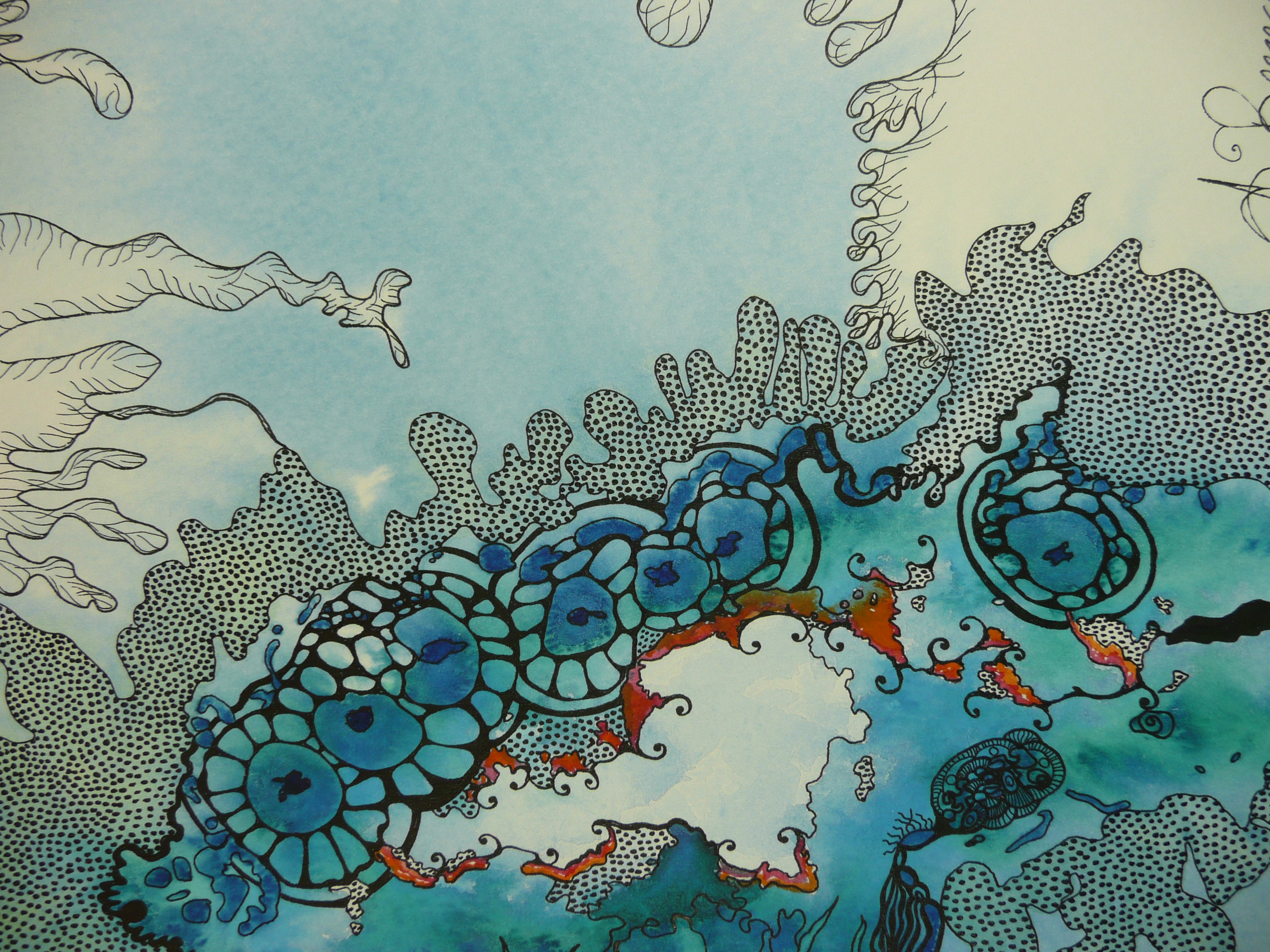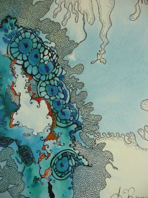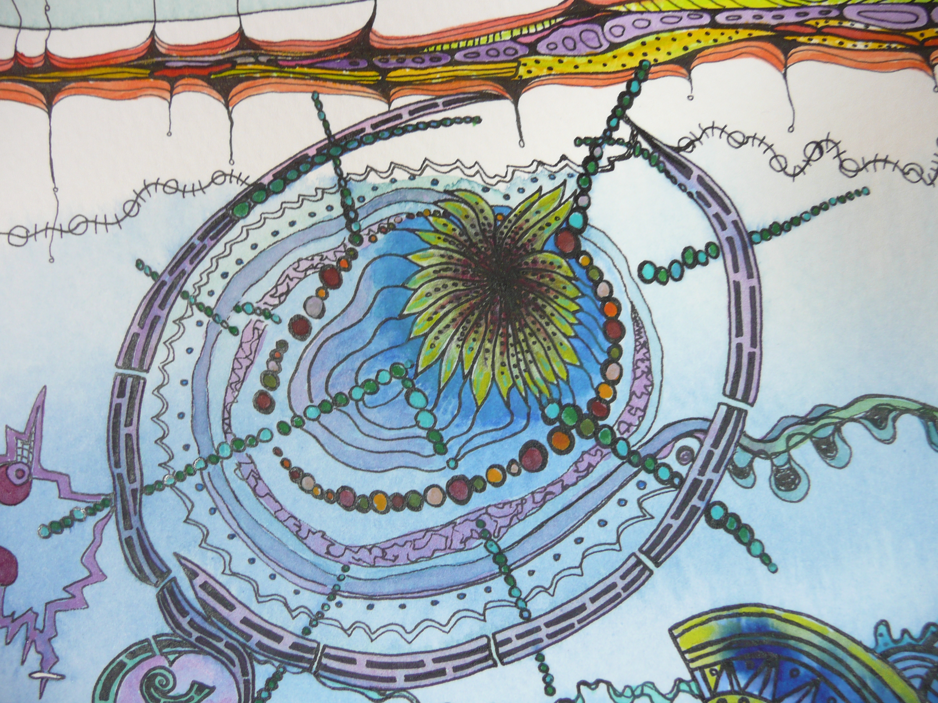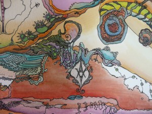 “When we soar into unknown verse” (detail bottom right) 9 x 12 watercolor