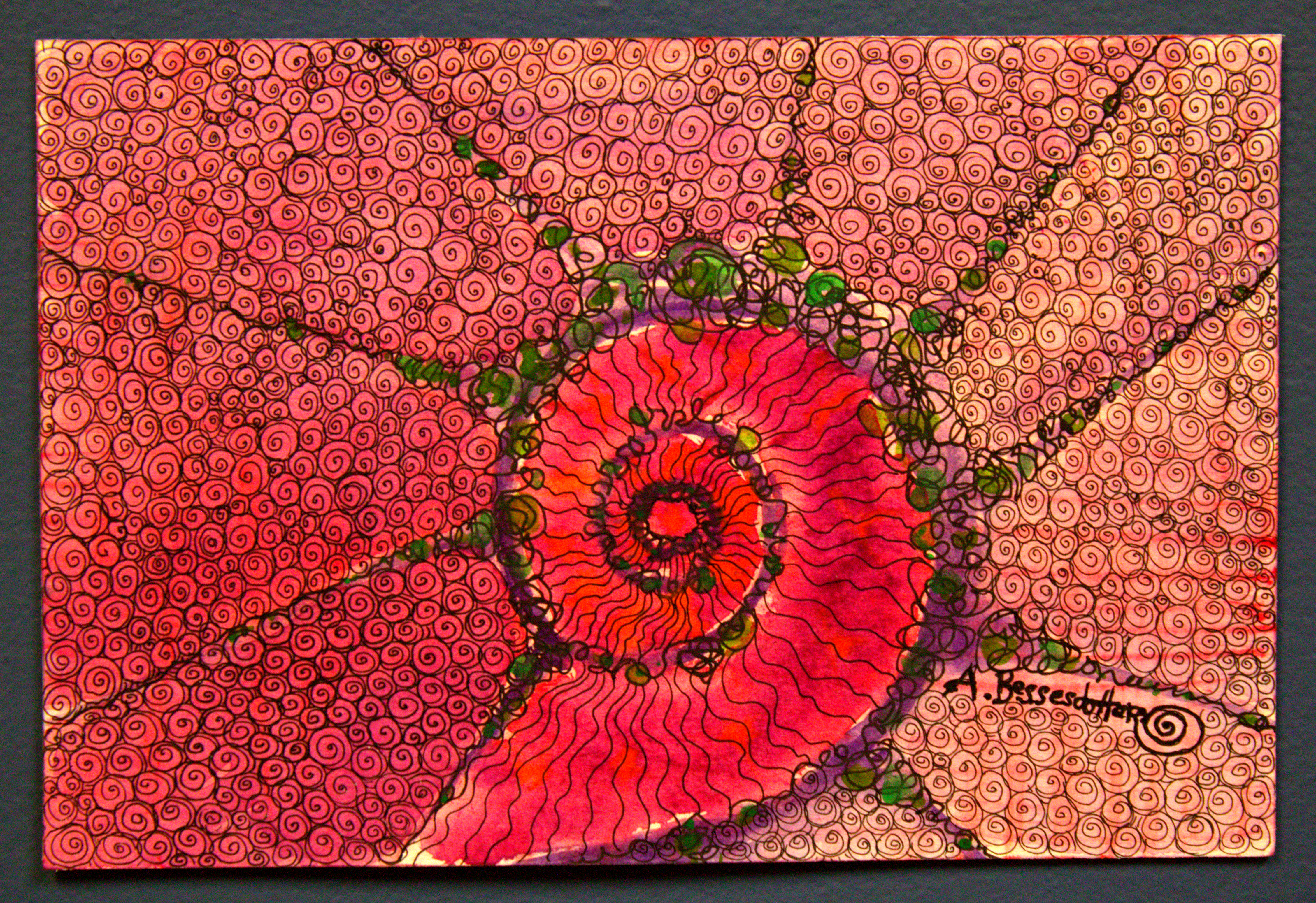 This piece was painted while I was sitting in a new age store in Allentown – with some of my friends. It is a Fire Goddess, she is ready with her shield and sword, coming to the aid of all who need protection.
