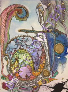 I never thought about where the objects I made would hang. Never cared if they sold. Those concepts never entered my mind. All my life I made art to make it—no choice–more like a compulsion. Last Thursday, I went to the NYC gallery where my painting is on display. Friends and family were with me and that made it more real for me that my work is hanging in NYC. I’ve heard others describe it as a dream they always wanted even from childhood. Odd that it never crossed my mind as being that important although I exhibited a few times in the 80’s because I was invited to do a small show.