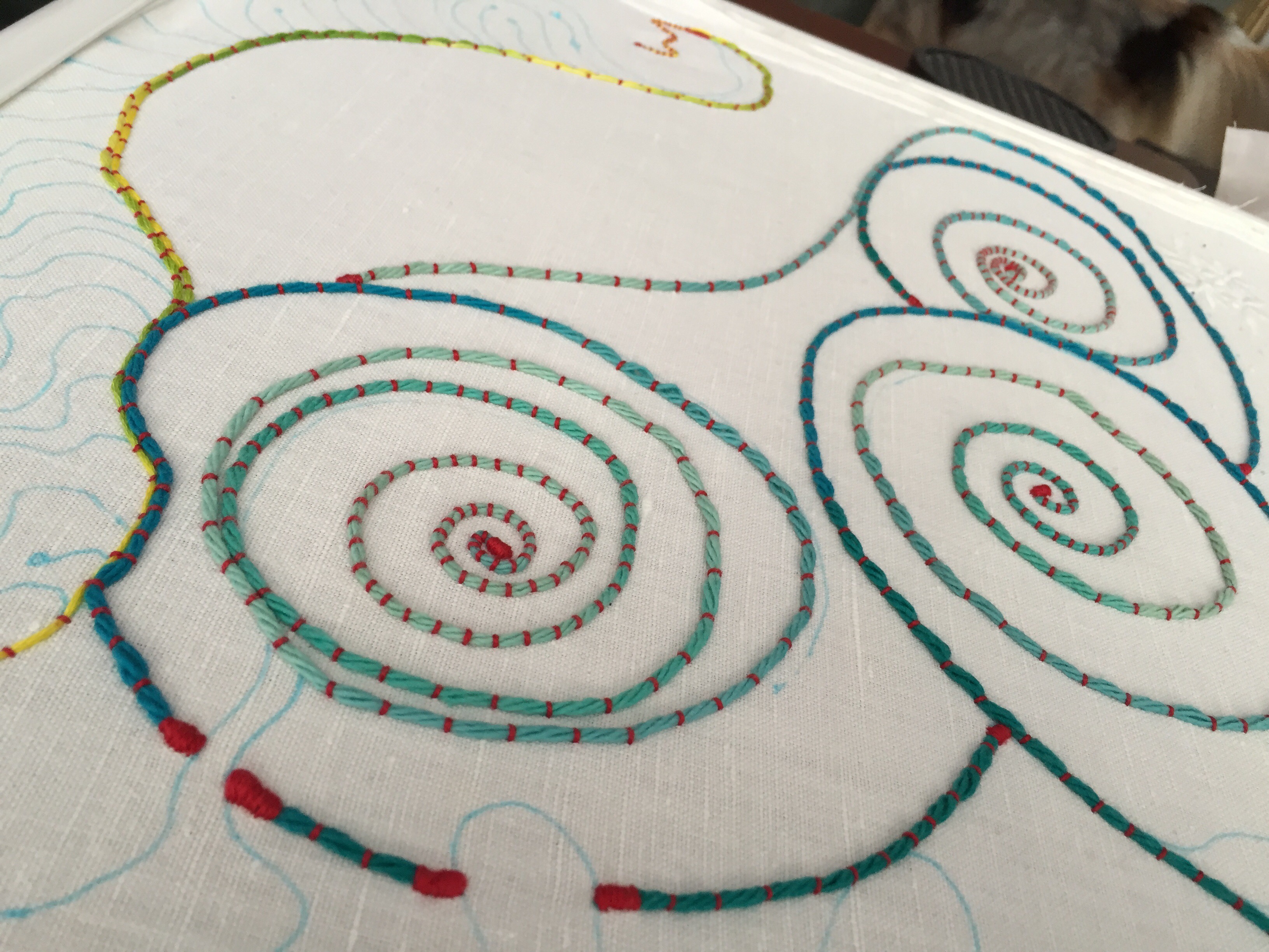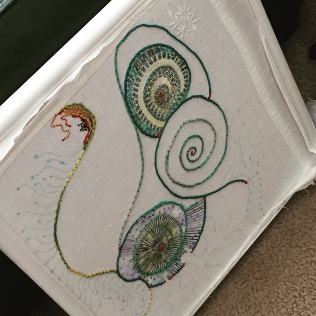 It happens with hand stitching too. Knotting up, catching a thread on the back, tangling. Sometimes it’s that kind of stitching: tangling and knotting.