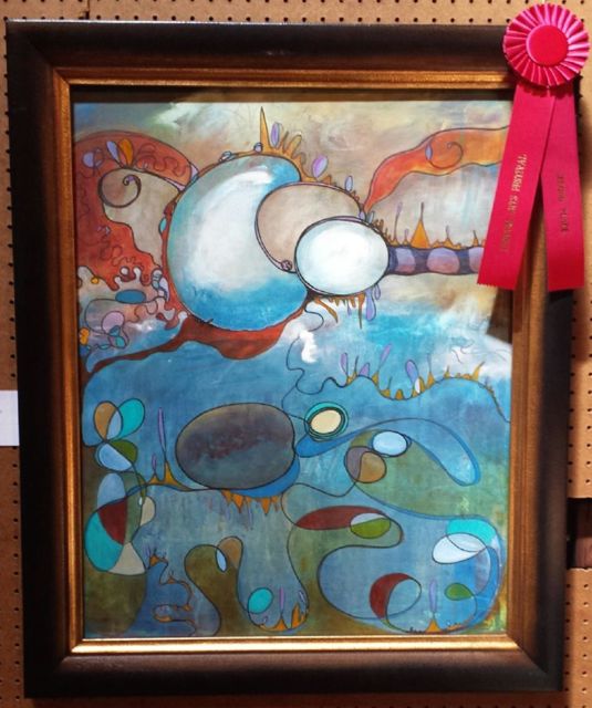 The conversation was rewarding and it was interesting to hear what they had to say about art and college and their own plans for their art or careers. We had a lot of fun working together – and they were so willing to assist in every way with carrying work, handling it carefully and with respect, arranging for posters, price lists, photographs, publicity and a signboard. Senior students provide structure and have interns working along side to provide support. Their willingness to lead, listen, support and general good nature is one of the reasons I truly enjoy working with student groups. The evening for the exhibit was March 18th and they provided food and drink, a sign board on the street, and interns were there for support to help collectors and guests with questions.