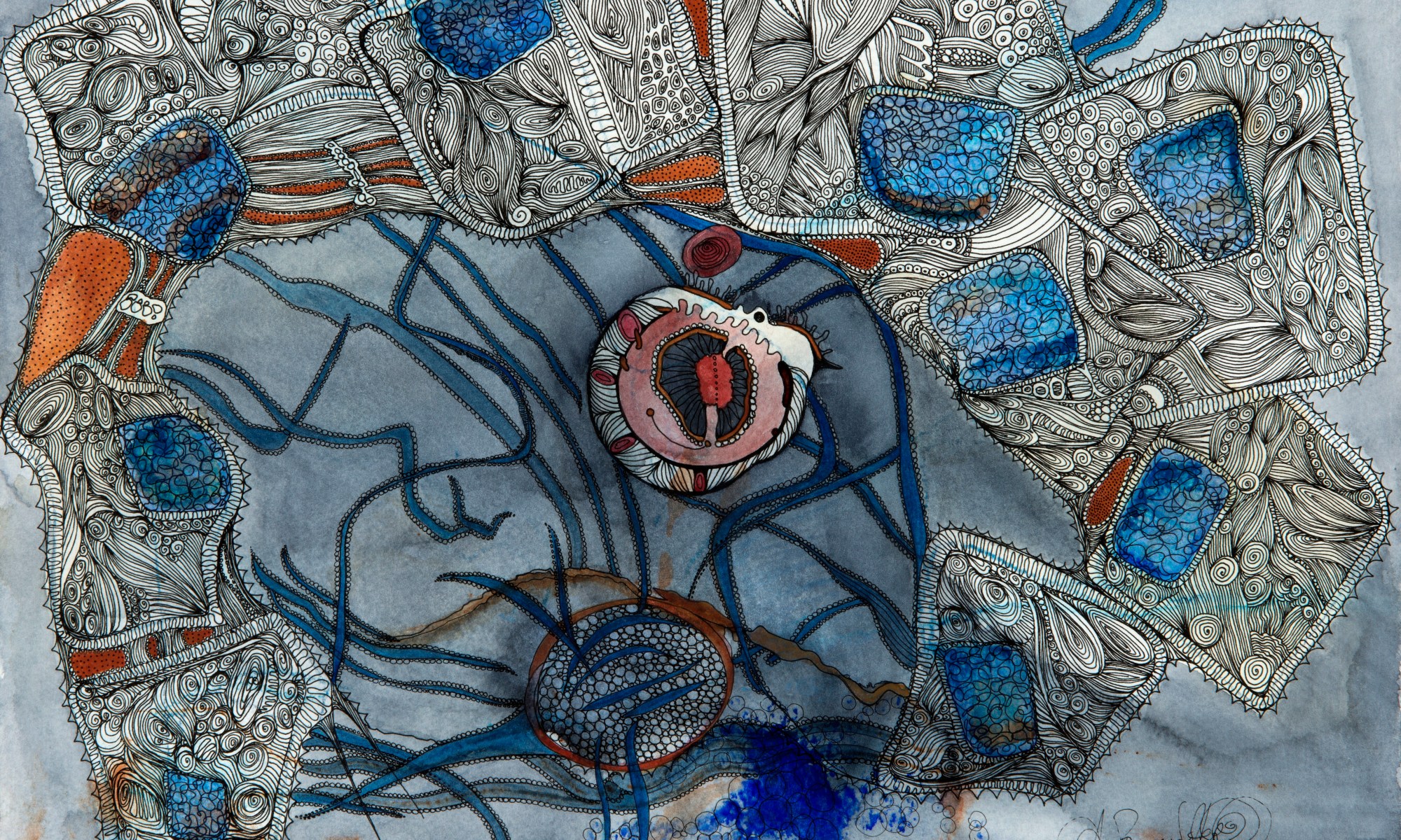 Each of the red works are about 7 or 8 inches and will be appliquéd onto a larger cloth and then machine quilted. I am a fan of combining several techniques and am open to what might happen yet. As this piece progresses or is completed I will share it. The name filtered to me as I was deep in stitching and with mind open, it seems it wanted to be called Roundhouse Blues.